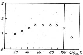 Где Qp – проходящая через клапан относительная величина потока (Q=q\qm)