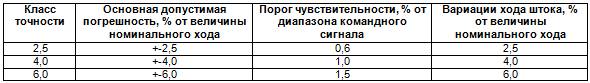 В существующих стандартах класс точности регулирующих клапанов с позиционером должен быть не ниже 2,5. Чтобы проконтролировать соответствие хода регулирующего клапана, определяется значение основной погрешности, порога чувствительности и вариации хода штока. Эти параметры оцениваются по ходовой характеристике регулирующего клапана на полностью собранном и отрегулированном изделии при незаполненном средой корпусе и сальнике, обеспечивающем герметичность подвижного соединения штока при условном давлении Ру. Сигнал при этом проверяется с точностью +– 0,4% от максимального значения, перемещение – с точностью +-0,5% от номинального хода штока.
