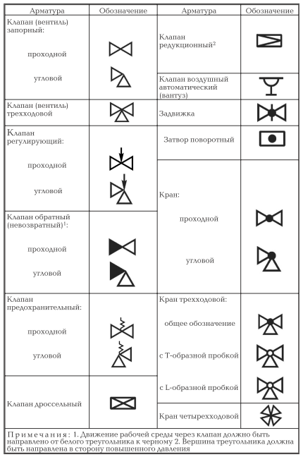 Рис. 1.9. Условные графические обозначения арматуры общего назначения по ГОСТ 2.785–70