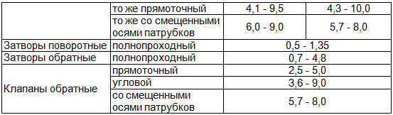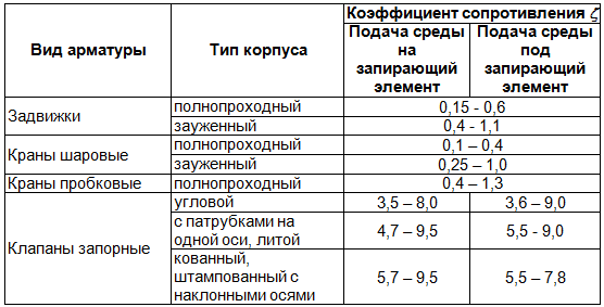 Табл. 1.8. Коэффициенты сопротивления арматуры