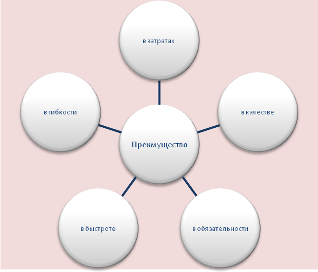 Преимущество в затратах – делать вещи при меньших затратах ресурсов.