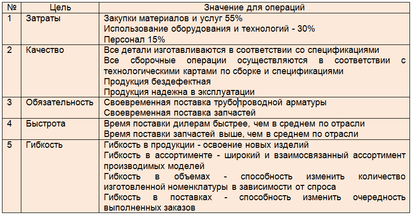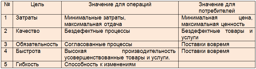 Цели операционной деятельностиПеред операционной деятельностью могут быть поставлены следующие пять целей, соответствующие пяти источникам конкурентного преимущества: