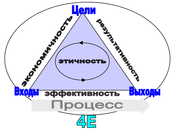 Обычно результаты деятельности сфокусированы на «4E» – экономичности, результативности, эффективности и этичности. Их взаимосвязь показана на рис. 1.8.