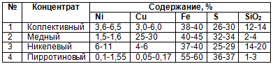 Табл. 3.3. Состав продуктов при обогащении медно никелевых руд