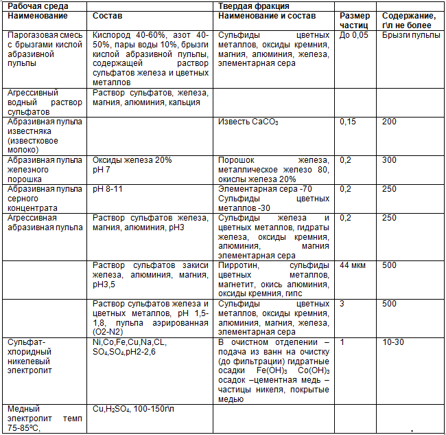 Табл. 3.4. Рабочие среды никелевого производства