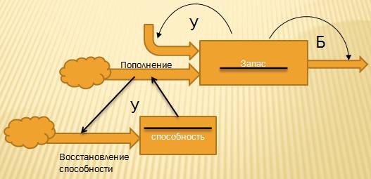 Появление внешнего входящего потока обеспечивает желаемый уровень запаса, но нарушает работу самовосстанавливающих механизмов, в результате чего они атрофируются. Это приводит к невозможности отказаться от этого потока без болезненных последствий.