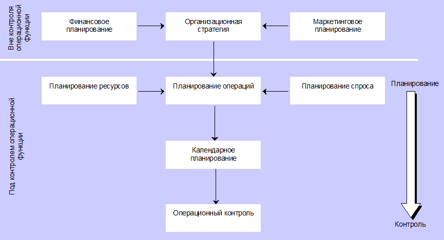 Краткосрочное планирование. Операционная функция связана с составлением подробного графика действий на ближайшие год-два для достижения поставленных целей. По мере перехода от долгосрочного краткосрочному периоду, фокус операционного менеджмента смещается с планирования на контроль: