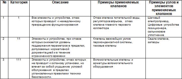 Табл. 2.7. Категории отказов клапанов
