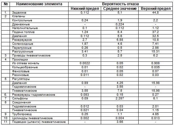 Табл. 2.8. Вероятность отказа клапанов и элементов контуров регулирования