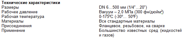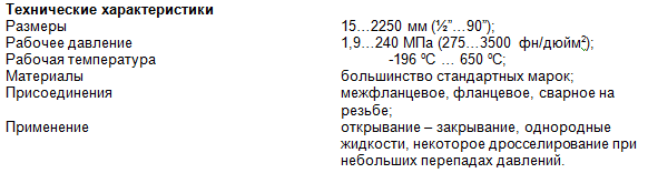 Основные технические характеристики задвижек