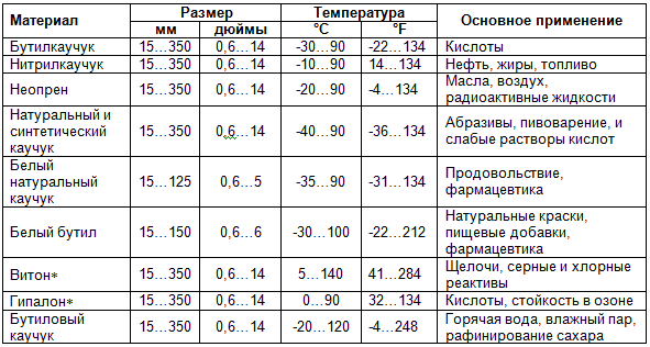 Корпус может быть изготовлен из широкого диапазона материалов, включая чугун, шаровидный чугун, бронзу, углеродистую и нержавеющую сталь. Он может быть покрыт разными эластомерами, полимерами, быть стеклянным или полностью полимерным для высокоагрессивных и абразивных сред. Перечень материалов диафрагм с каждым годом становится все шире, часть их приведена в таблице 2.1, где названы типовые примеры, позволяющие применять клапаны в широком диапазоне температур и рабочих сред.