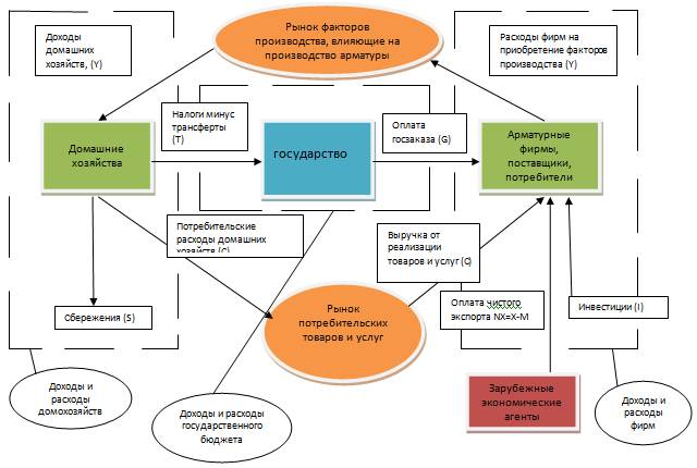 Рис.3.2. Модель кругооборота доходов в РФ, влияющие на работу арматурных компаний