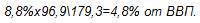 По данным за 2008 г чистый экспорт составлял 8,8% от ВВП РФ и был равен 179,3 млрд. Долл., тогда 96,9 млрд. Долл. составят: