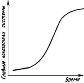 S – кривая демонстрирует, как некоторая промышленная продукция заменяет другие подобные товары. Вертикальная ось – доля рынка, горизонтальная – время. Форма S –кривой показывает зависимость, как новая продукция заменяет остальные продукты. Сначала смена происходит медленно, но затем S- кривая становится более крутой. В конце наклон кривой уменьшается.