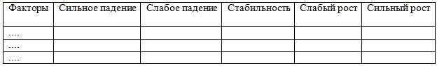 Используя таблицу, приведенную ниже, сделайте прогноз изменения основных внешних факторов, воздействующих на вашу организацию на ближайшие три года.