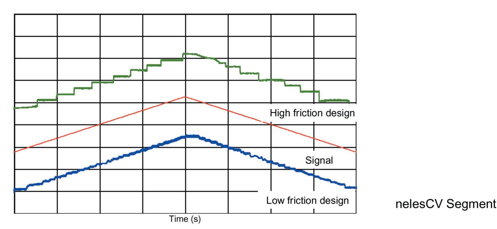 Рис. 5. Характеристики отклика при использовании конструкций клапанов с высоким и низким трением