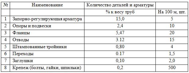 Табл. 2.5.1. Показатели комплектации трубопроводов