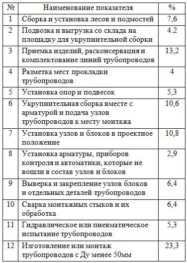 2. Монтаж арматуры внутрицеховых трубопроводов с участием сервис инженера. Из общего веса внутрицеховых трубопроводов примерно 63% приходится на участки, имеющие сложную конфигурацию, 37% на прямолинейные участки. Из них линии и участки трубопроводов сложной конфигурации с условным проходом более 50 мм, как правило, монтируются из узлов, которые могут быть заранее изготовлены монтажными участками в трубозаготовительных цехах с установкой арматуры и тестированием всего узла. Трубопроводы диаметром менее 50мм монтируют на месте, их вес в общем объеме, как правило, меньше 5%. Однако, по объему работ они занимают до 24%. В этом случае участие специалистов сервис центра в шефмонтаже клапанов и арматуры должно происходить и на монтажной площадке. Показатели трудоемкости основных операций монтажа приведены в табл.2.5.2.