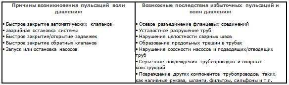 Как видно из таблицы, все причины появления волн давления и гидроударов в системе связаны с открытием или закрытием клапанов.