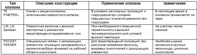 Типы рекомендуемых клапанов METSO AUTOMATION для условий высоких пульсаций и гидроударов приведены ниже, табл.2.16.