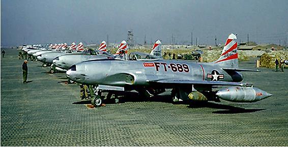 Американские истребители F-80 «Шутинг Стар» на аэродроме базирования в Корее