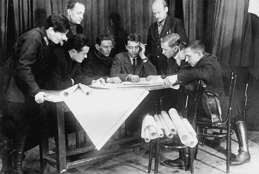 Ф.А. Цандер (стоит слева) с сослуживцами и единомышленниками