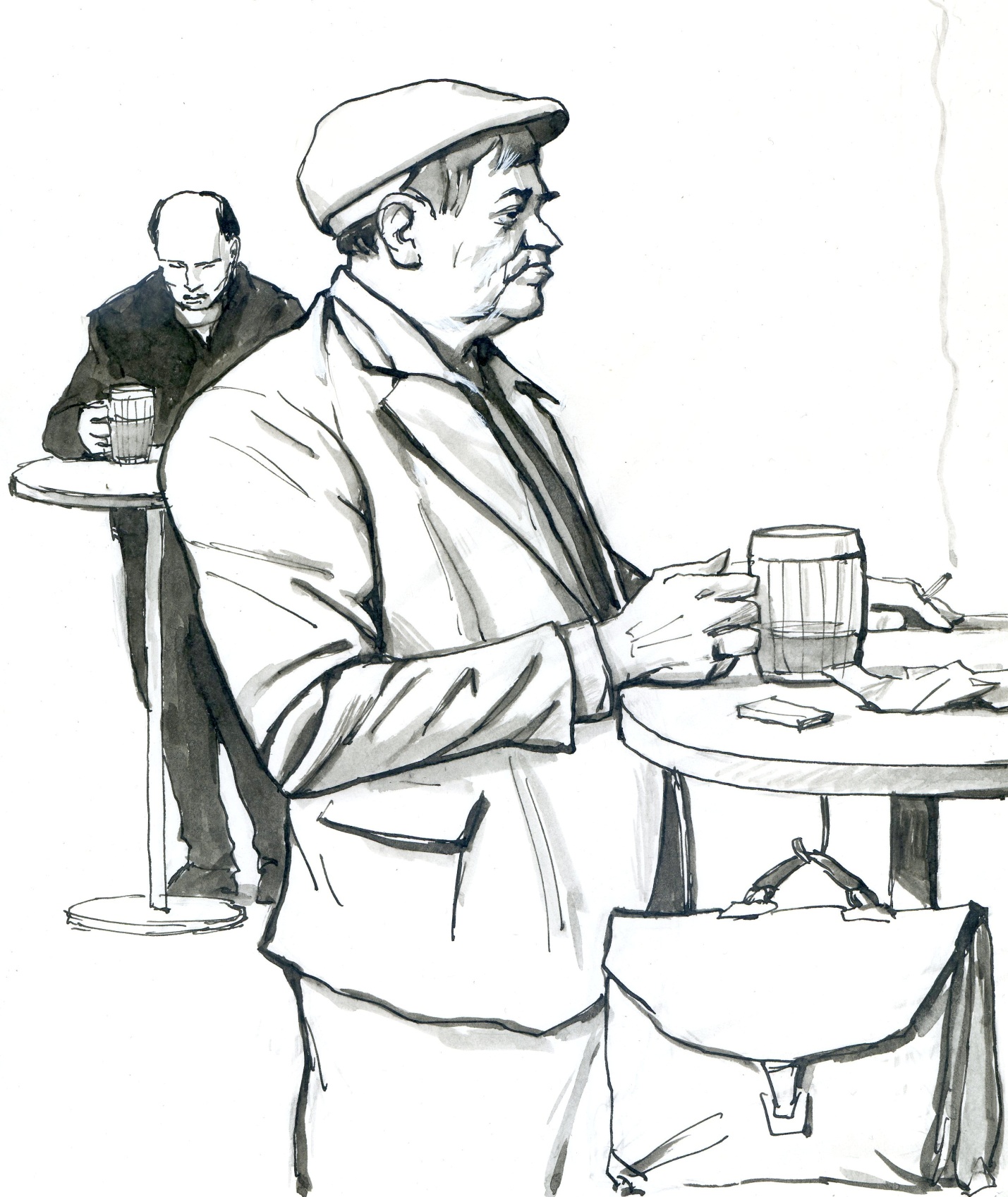 Следователь Красков не спеша идёт по Питерской улице, спускается в полуподвальное старинное помещение – рюмочная советских времен. Заходит, подходит к прилавку советского типа, в котором лежат бутерброды и салаты на тарелках. Женщина, докуривая сигарету, приветствуя его, даёт ему графин с водкой и бумажную тарелку с двумя бутербродами со шпротами, яйцом и солёным огурцом. Красков садится за угловой пошарканный стол, по телевизору играет футбол команды Зенит.