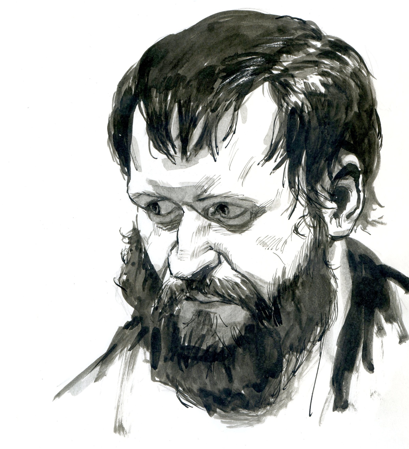 Монах людоед в рясе с очень важным видом идёт через кладбище с полиэтиленовым пакетом в руках из Пятёрочки. К нему подбегают две старушки в платках, начинают кланяться в ноги. Погладив сначала одну, потом другую по голове он проходит мимо, они трепетно кланяются, начинают креститься, благодарят его. Монах заходит в пристройку к церкви, ставит на стол накрытый скатертью пакет, достаёт оттуда бутылку водки, большую палку колбасы. Подходя к полке, достаёт банку домашних, саленных огурцов и пивную кружку. Наливая водку в пивную кружку, чуть меньше половины сразу выпивает. Отрезает большой кусок Колбасины, отрывая кусок каравая, в виде бутерброда. Начинает откусывать колбасу с хлебом, крошки летят у него по бороде, достаёт огурец из банки вилкой, откусывает, капли сочатся по его бороде. Протерев бороду рукой, поворачивается к дверям, снимает связку ключей весящей на гвоздике, выходит из кельи.