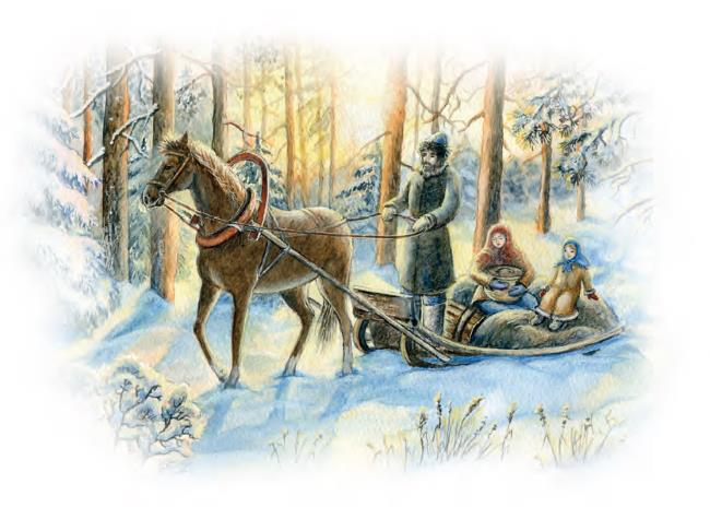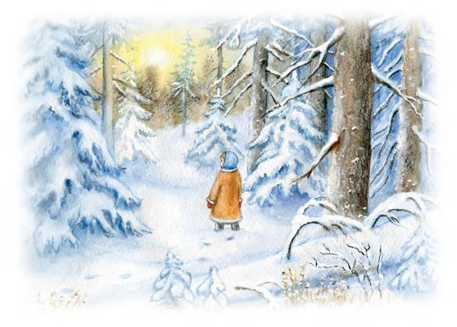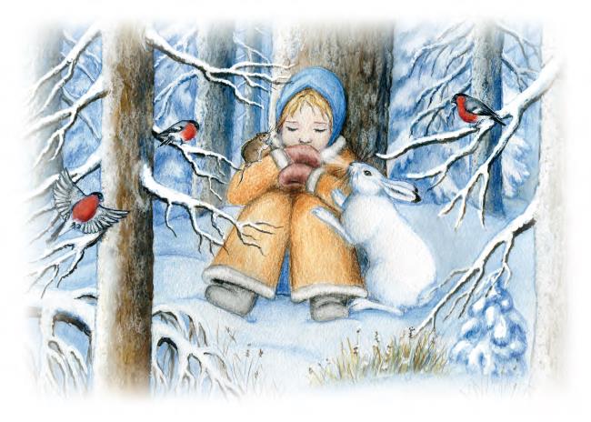 А Оленька зимой в лесу заблудилась. Поискала дорогу, поплутала, из сил выбилась – да и села под деревом замерзать.