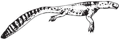 В середине периода на первый план вышли другие оригинальные темноспондилы – Plagiosauroidea, например, Plagiosternum. Они имели короткую, зато крайне широкую – в 2,5 раза больше длины – голову с огромнейшими глазницами; видимо, это была защита от проглатывания капитозавроидами. А гарантией служил спинной панцирь из рельефных костных пластинок.