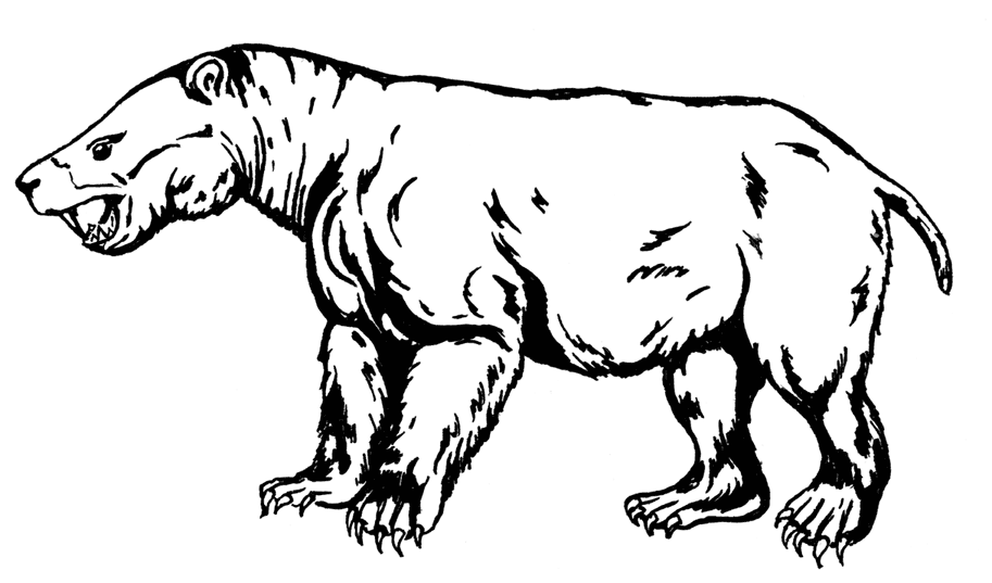Ещё более быстроэволюционировавшая североамериканская группа – Taeniodonta; они появились ещё в мезозое; между прочим, опоссумоподобная Schowalteria clemensi была тогда в числе крупнейших млекопитающих. В палеоцене тениодонты начали с роющих всеядных Onychodectes tisonensis – зверя, похожего на крысу с приплюснутой головой и достаточно банальным набором зубов, – и довольно быстро подросли до Wortmania otariidens, у которой морда укоротилась, а нижняя челюсть стала очень тяжёлой, и далее – до Psittacotherium multifragum метровой длины, в полсотни килограмм весом и с совсем уж страшной нижней челюстью. Как и у тиллодонтов, тениодонты изобрели постоянно растущие передние зубы с эмалью лишь на передней стороне, с отличием в том, что главными грызущими зубами стали клыки, а в меньшей степени – боковые резцы. Огромными когтями на мощнейших лапах (опять пятипалых, опять с несросшимися костями предплечья и голени) тениодонты, видимо, выкапывали какие-то корни и клубни.