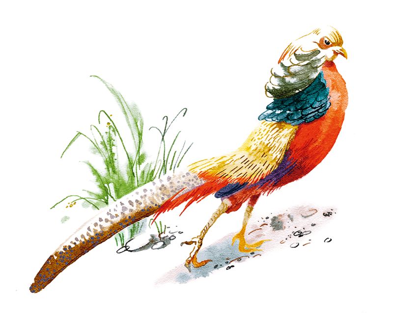 Боевое оперение у золотого фазана! Как у рыцаря на турнире. Шлем золотой солнечные блики во все стороны мечет. Брюхо синее с алым, словно цвета дворянского герба. Щёки серебряные, будто кольчугой прикрыты. А главное – хвост. Хвост – меч! Острый. Алый. Одним видом сразить может. Лапы тонкие, крепкие, со шпорами. Прямо – рыцарь! И вдруг – пиканье.