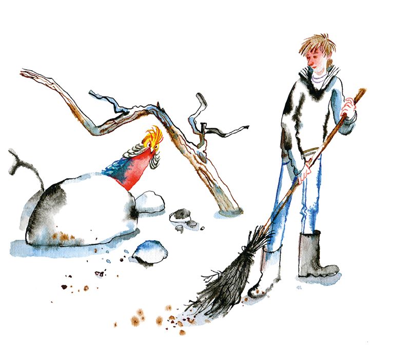 Устроился я работать в Птичий отдел, на фазанью кухню. Рядом попугайная – там для попугаев еду готовят, а наша – фазанья. Попугайная в хорошей комнате находилась, а наша в кишке какой-то, похожей на коридор. Поэтому и жизнь у нас на фазаннике была какая-то коридорная, неуютная. Ни чаю толком попить, ни пообедать. А чай в зоопарке не последнее дело! Многие в зоопарк вообще приходят только чай пить. Вахтёры, например. Попили чай до шести часов и домой – ужинать. Иногда только в окошки смотрят, чтобы кто чужой в зоопарк чай пить не прошёл.