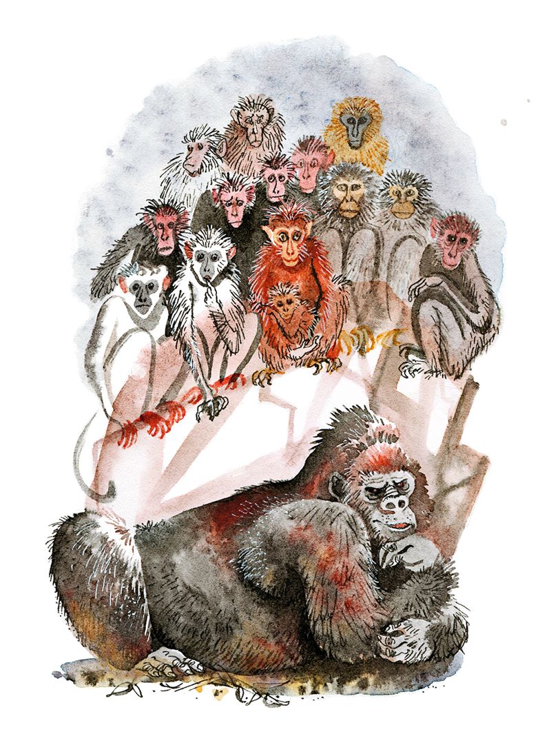 Тогда обезьяны отворачиваются от стёкол и говорят друг другу: