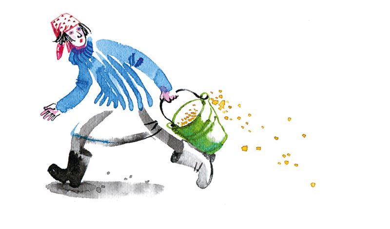 Работает у нас на фазаннике Зина. Такая маленькая, что у неё даже фамилия Муравьёва. Ей все спецовки велики. Поэтому она в своём свитере ходит.