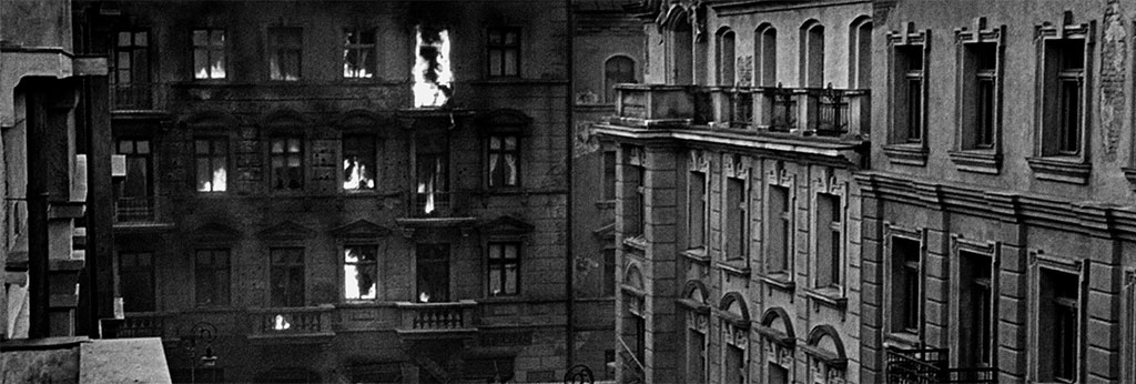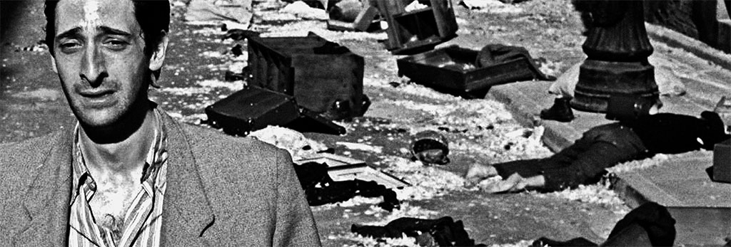 Взгляд из окна, из-за занавесок, из комнаты с потушенным светом – еще один элемент этой истории, сближающий Шпильмана и Поланского. Поэт вуайеризма, автор «квартирной трилогии» обнаруживает своего героя на долгие месяцы заточенным в неуютные пространства чьих-то скромных мещанских апартаментов. Это его спасение и его тюрьма, он окружен чужими вещами, которые все равно нельзя трогать, чтобы не шуметь, и звуками, на которые нельзя откликнуться. Все, что он может, – это смотреть, быть свидетелем, он сведен к взгляду, и тут субъективный кинематограф Поланского работает во всю мощь: из одного окна Шпильман наблюдает за крахом восстания в гетто, из другого – за крахом общегородского восстания. Однажды нарушив на мгновение закон тишины, он немедленно вызывает квартирного демона, соседку, которая набрасывается на него почти что с лаем: «Еврей! Хватайте еврея!»