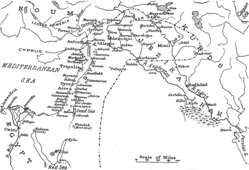 SELAHADDİN’İN SEFERLERİNİ RESMEDEN SURİYE VE FİLİSTİN HARİTASI