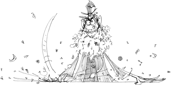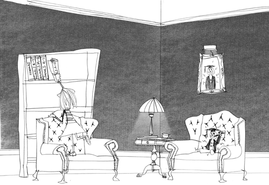 ‘Hello,’ said Polly, bending down to give him a hug. She had to bend down because Alan Taylor was only 15.24 centimetres tall. He was probably the world’s smallest ever headmaster, and almost definitely the only one to be made out of gingerbread. His electric muscles sparked and whirred merrily as he led Polly along a long corridor lined with drawings done by the schoolchildren. Even the rubbish drawings were pinned up, because Alan Taylor wasn’t the kind of headmaster who says things like, ‘Blimey, this drawing’s pathetic, is that supposed to be a tree?’ He was the kind of headmaster who says things like, ‘Well done for trying, have a gold star and some sweets.’