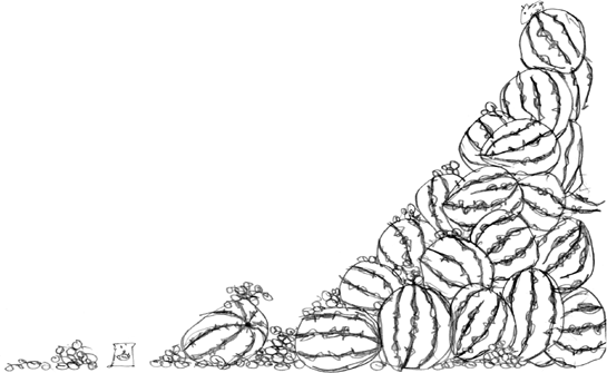 He was as tall as two men, or about forty hamsters if you could only manage to glue them on top of each other to prove it. And he weighed as much as two hundred watermelons, or roughly nineteen thousand grapes.