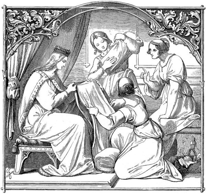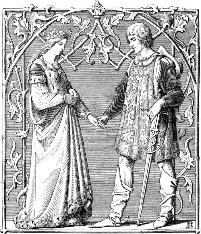 339 «Und wären eurer viere, die könnten nicht gedeihnVor ihrem grimmen Zorne: drum laßt den Willen sein,Das rath ich euch in Treuen: entgeht ihr gern dem Tod,So macht um ihre Minne euch nicht vergebliche Noth.»340 «Sei sie so stark sie wolle, die Reise muß ergehnHin zu Brunhilden, mag mir was will geschehn.Ihrer hohen Schönheit willen gewagt muß es sein:Vielleicht daß Gott mir füget, daß sie uns folgtan den Rhein.»341 «So will ich euch rathen,» begann da Hagen,«Bittet Siegfrieden, mit euch zu tragenDie Last dieser Sorge; das ist der beste Rath,Weil er von Brunhilden so gute Kunde doch hat.»342 Er sprach: «Viel edler Siegfried, willst du mir Helfer seinZu werben um die Schöne? Thu nach der Bitte mein;Und gewinn ich mir zur Trauten das herrliche Weib,So verwag ich deinetwillen Ehre, Leben und Leib.»343 Zur Antwort gab ihm Siegfried, König Siegmunds Sohn:«Ich will es thun, versprichst du die Schwester mirzum Lohn,Kriemhild die schöne, eine Königin hehr:So begehr ich keines Dankes nach meinen Arbeitenmehr.»344 «Das gelob ich,» sprach Gunther, «Siegfried,dir an die Hand.Und kommt die schöne Brunhild hieher in dieses Land,So will ich dir zum Weibe meine Schwester geben:So magst du mit der Schönen immer in Freuden leben.»345 Des schwuren sich Eide diese Recken hehr.Da schuf es ihnen beiden viel Müh und Beschwer,Eh sie die Wohlgethane brachten an den Rhein.Es musten die Kühnen darum in großen Sorgen sein.346 Von wilden Gezwergen hab ich hören sagen,Daß sie in hohlen Bergen wohnen und Schirme tragen,Die heißen Tarnkappen, von wunderbarer Art;Wer sie am Leibe trage, der sei gar wohl darin bewahrt347 Vor Schlägen und vor Stichen; ihn mög auch Niemandsehn,So lang er drin verweile; hören doch und spähnMag er nach feinem Willen, daß Niemand ihn erschaut;Ihm wachsen auch die Kräfte, wie uns die Märe vertraut.348 Die Tarnkappe führte Siegfried mit hindann,Die der kühne Degen mit Sorgen einst gewannVon einem Gezwerge mit Namen Alberich.Da schickten sich zur Reise Recken kühn und ritterlich.349 Wenn der starke Siegfried die Tarnkappe trug,So gewann er drinnen der Kräfte genug,Zwölf Männer Stärke, so wird uns gesagt.Er erwarb mit großen Listen diese herrliche Magd.350 Auch war so beschaffen die Nebelkappe gut,Ein Jeder mochte drinnen thun nach seinem Muth,Was er immer wollte, daß ihn doch Niemand sah.Damit gewann er Brunhild, durch die ihm bald viel Leidgeschah.351 «Nun sage mir, Siegfried, eh unsre Fahrt gescheh,Wie wir mit vollen Ehren kommen über See?Sollen wir Ritter führen in Brunhildens Land?Dreißigtausend Degen die werden eilends besandt.»352 «Wie viel wir Volkes führten,» sprach Siegfried wider ihn,«So grimmiger Sitte pflegt die Königin,Das müste doch ersterben vor ihrem Uebermuth.Ich will euch beßer rathen, Degen ihr kühn und gut.»353 «In Reckenweise fahren laßt uns zu Thal den Rhein.Die will ich euch nennen, die das sollen sein:Zu uns zwein noch zweie und Niemand anders mehr,Daß wir die Frau erwerben, was auch geschehe nachher.»354 «Der Gesellen bin ich einer, du sollst der andre sein,Und Hagen sei der dritte: wir mögen wohl gedeihn;Der vierte das sei Dankwart, dieser kühne Mann.Es dürfen Andrer tausend zum Streite nimmeruns nahn.»355 «Die Märe wüst ich gerne,» der König sprach da so,«Eh wir von hinnen führen, des wär ich herzlich froh,Was wir für Kleider sollten vor Brunhilden tragen,Die uns geziemen möchten: Siegfried, das sollstdu mir sagen.»356 «Gewand das allerbeste, das man irgend fand,Trägt man zu allen Zeiten in Brunhildens Land:Drum laß uns reiche Kleider vor der Frauen tragen,Daß wirs nicht Schande haben, hört man künftigvon uns sagen.»357 Da sprach der gute Degen: «So will ich selber gehnZu meiner lieben Mutter, ob es nicht mag geschehn,Daß ihre schönen Mägde uns schaffen solch Gewand,Das wir mit Ehren tragen in der hehren Jungfrau Land.»358 Da Sprach von Tronje Hagen mit herrlichen Sitten:«Was wollt ihr eure Mutter um solche Dienste bitten?Laßt eure Schwester hören euern Sinn und Muth:Die ist so kunstreich, unsre Kleider werden gut.»359 Da entbot er seiner Schwester, er wünsche sie zu sehnUnd auch der Degen Siegfried. Eh sie das ließ geschehn,Da hatte sich die Schöne geschmückt mit reichem Kleid.Daß die Herren kamen, schuf ihr wenig Herzeleid.360 Da war auch ihr Gesinde geziert nach seinem Stand.Die Fürsten kamen beide; als sie das befand,Erhob sie sich vom Sitze: wie höfisch sie da gieng,Als sie den edeln Fremdling und ihren Bruder empfieng!361 «Willkommen sei mein Bruder und der Geselle sein.Nun möcht ich gerne wissen,» Sprach das Mägdelein,«Was euch Herrn geliebe, daß ihr zu Hofe kommt:Laßt mich doch hören, was euch edeln Recken frommt.»362 Da sprach König Gunther: «Frau, ich wills euch sagen.Wir müßen große Sorge bei hohem Muthe tragen:Wir wollen werben reiten fern in fremdes LandUnd hätten zu der Reise gerne zierlich Gewand.»363 «Nun sitzt, lieber Bruder,» sprach das Königskind,«Und laßt mich erst erfahren, Wer die Frauen sind,Die ihr begehrt zu minnen in fremder Könge Land.»Die Auserwählten beide nahm das Mägdleinbei der Hand:364 Hin gieng sie mit den Beiden, wo sie geseßen warAuf prächtgen Ruhebetten, das glaubt mir fürwahr,Mit eingewirkten Bildern, in Gold wohl erhaben.Sie mochten bei der Frauen gute Kurzweile haben.365 Freundliche Blicke und gütliches Sehn,Des mochte von den Beiden da wohl viel geschehn.Er trug sie in dem Herzen, sie war ihm wie sein Leben.Er erwarb mit großem Dienste, daß sie ihm wardzu Weib gegeben.366 Da sprach der edle König: «Viel liebe Schwester mein,Ohne deine Hülfe kann es nimmer sein.Wir wollen abenteuern in Brunhildens Land;Da müßen wir vor Frauen tragen herrlich Gewand.»367 Da sprach die Königstochter: «Viel lieber Bruder mein,Kann euch an meiner Hülfe dabei gelegen sein,So sollt ihr inne werden, ich bin dazu bereit;Versagte sie ein Andrer euch, das wäre Kriemhilden leid.368 „Ihr sollt mich, edler 