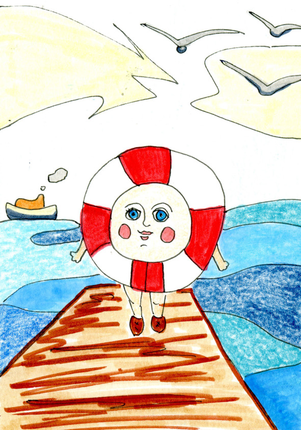 Тут к ним подошла О, одетая в красное и белое, потому что работала на взморье спасательным кругом. Вдруг кто начнет тонуть.