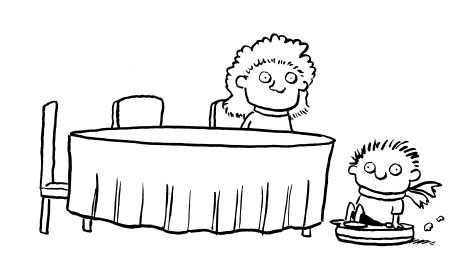 Сказав это, Тимми Фейл уезжает на своей Румбе под стол и врезается в стулья.