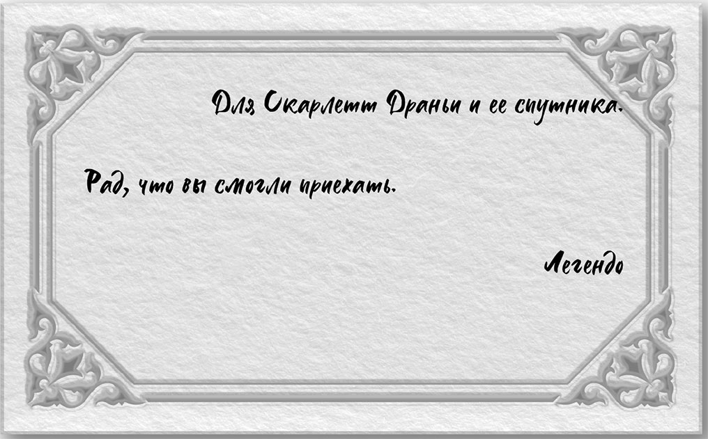 Послание было написано на такой же бумаге с золочеными краями, что и письмо, которое Скарлетт получила на Трисде. Ей стало интересно, всех ли гостей магистр принимает схожим образом. Скарлетт не верила в собственную исключительность, но в то же время сомневалась, чтобы каждый прибывший на Караваль получал персональное приветствие и красные розы.
