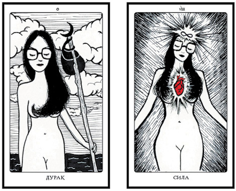 Свою колоду «Таро Лунной Бездны» я создавала только для личного пользования. Это автобиографическая колода. Сначала я нарисовала себя в виде Дурака: обнаженную, с закрытыми глазами, уходящую прочь от океана, с небольшой котомкой за спиной. Использование себя в качестве одного-единственного персонажа, олицетворяющего все архетипы Старших арканов, помогло мне понять и усилить свою интуицию, а также углубить понимание каждой карты. Сосредоточение на собственном жизненном опыте породило глубоко очищающий эффект и помогло узнать, насколько я на самом деле жизнестойкая и смелая.