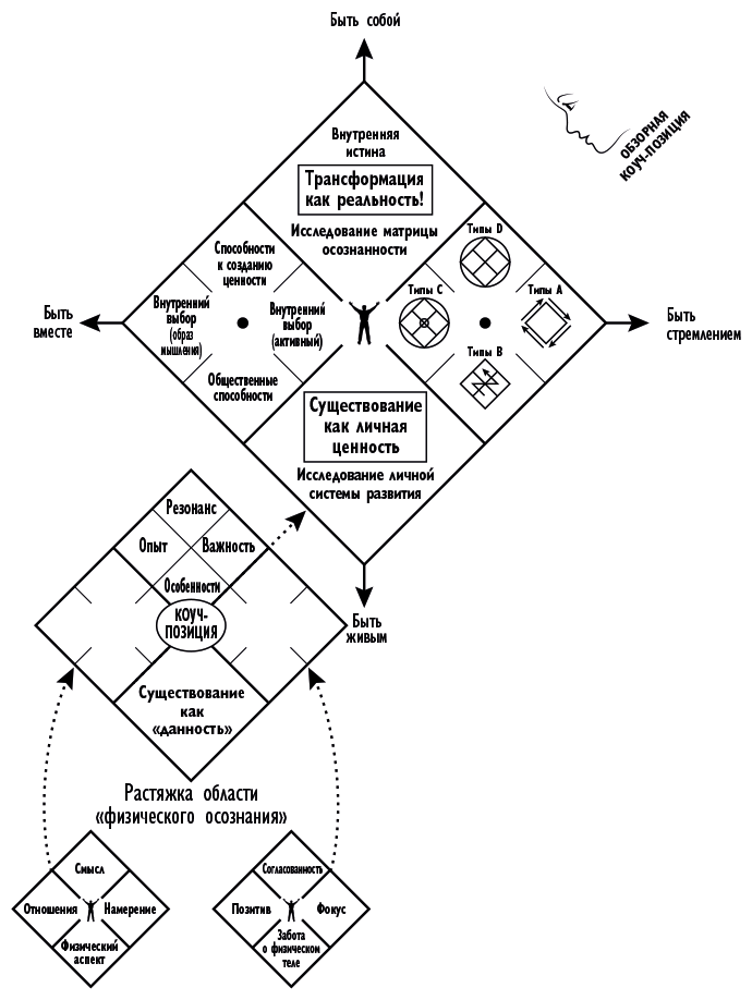 Типы A, B, C и D предоставляют нам «игровые доски» с уникальными перспективами коуч-позиций: А – в отношении цели, B – в отношении предназначения, С – внутренней целостности и D – «всего вместе».