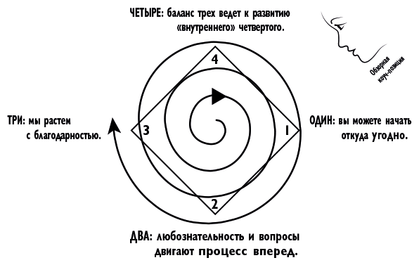Этот замечательный закон мы открываем снова и снова, он позволяет дышать полной грудью и расти в любом возрасте. Очередность внимания к квадрантам и проявляющимся аспектам разума не имеет большого значения. Главное – запустить процесс исследования!