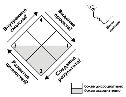 Нижние квадранты ромба символизируют ассоциативные и исследовательские части этого процесса. Верхние – диссоциативные и интегративные части. Чтобы хорошо исполнить любой цельный проект, требуются оба аспекта в нужных пропорциях. Кроме того, в каждой области открываются различные задачи и вопросы, которые нужно решать по отдельности (см. рис. 3.4).