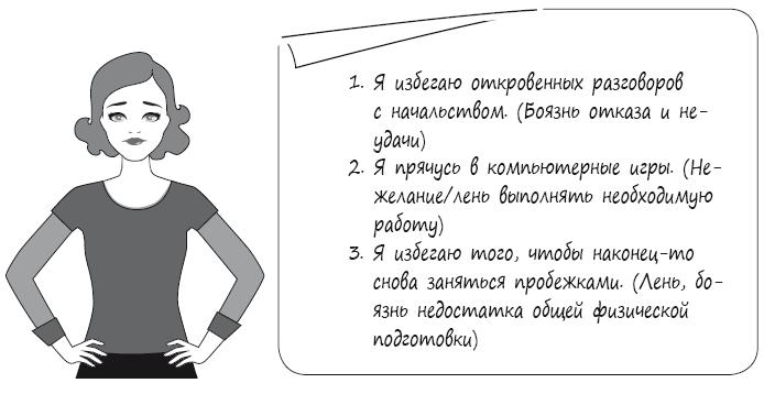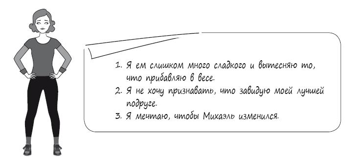 Представь три конкретные ситуации, когда у тебя возникли проблемы в общении с другими людьми или когда ты вел себя не так, как бы тебе того хотелось. Спроси себя касательно каждой ситуации: «Я что-то вытесняю здесь? Я приукрашиваю это для себя? Или я витаю в облаках, воображая несбыточное решение?»