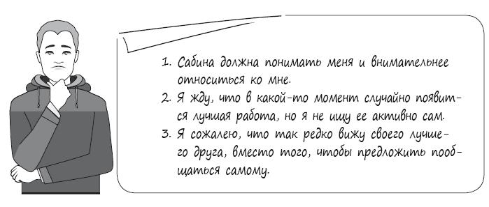 Тебе это знакомо? Подумай о том, в каких областях жизни ты надеешься на то, что кто-то другой изменится или произойдет что-то, от чего тебе станет лучше. Запиши три области.