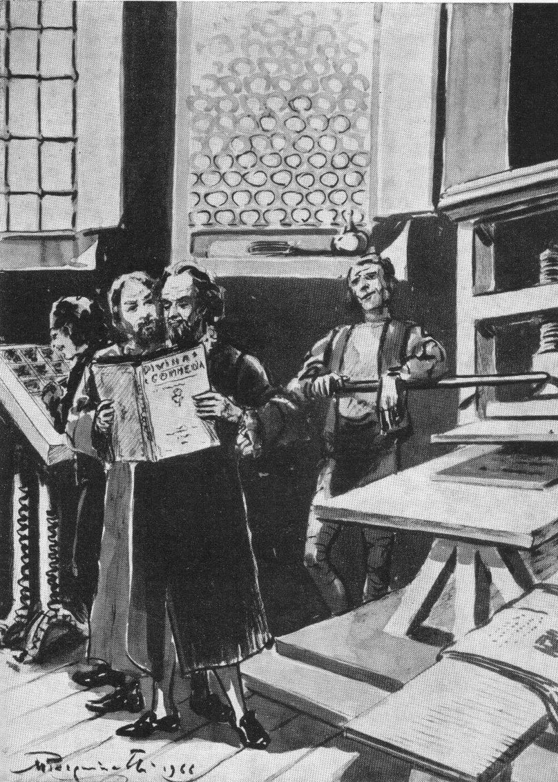 Lucia was heartbroken when, after a few days, Uncle Artemio summoned she to his office, in the other wing of the palace compared to the one inhabited by her and her grandmother. The uncle’s office was a huge room, lavishly furnished, the walls enriched with tapestries, the floor partly covered with a huge carpet. A bookcase occupied an entire wall, containing sacred and profane texts, valuable manuscripts and some printed texts, including a copy of Dante Alighieri’s Divine Comedy, made years earlier by Federico Conti in his printing house in Jesi. Lucia would have wanted very much to consult those texts, but she had always been strictly forbidden.